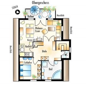Wohnzimmer mit Küchenbereich Wohnung 1